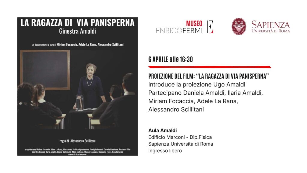 Il 16 aprile 2026, l’Aula Amaldi ospita un evento dedicato alla pioniera della divulgazione scientifica in Italia. Con la partecipazione di Ugo Amaldi. Il Dipartimento di Fisica di Sapienza Università di Roma, in collaborazione con il Museo Storico della Fisica e Centro Studi e Ricerche “Enrico Fermi”, presenta la proiezione speciale del docufilm “La ragazza […]